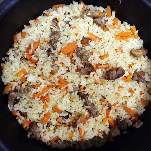 抓饭是维吾尔族民众逢年过节、婚嫁喜庆日子里,招待亲朋贵客的主要食品之一。传统食用抓饭,是在客人们洗净手后,用手直接抓食,所以叫“抓饭”。如今多用筷子、勺子。