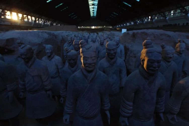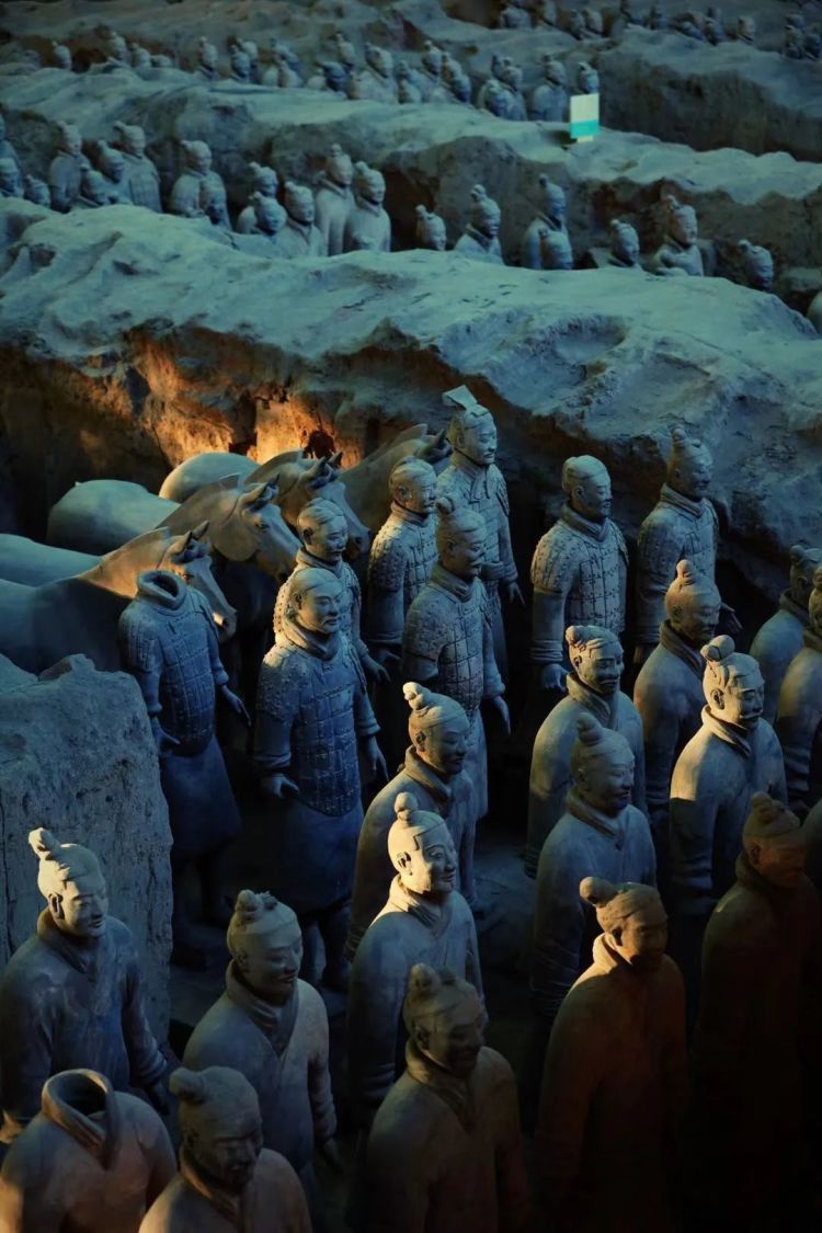 惊喜远不止于此。每年兵马俑都会“复活”一次。所谓的复活,是光与影的功劳。铅灰色的文物在阳光下瞬间变得流光溢彩,如获新生。