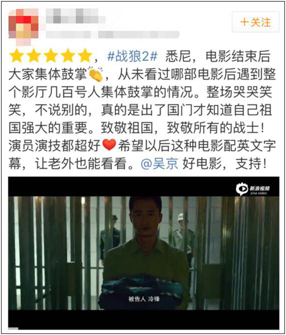 环球时报:对《战狼2》有赞誉也有差评,还有人认为电影展现的民族主义情绪过了度,甚至衍生出“战狼PTSD”“含京量”等词汇。对此如何评价?