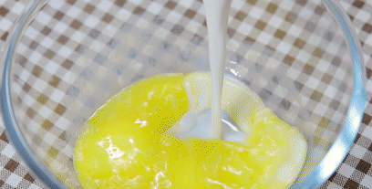 蛋液中加入牛奶,将两种食材搅拌均匀。