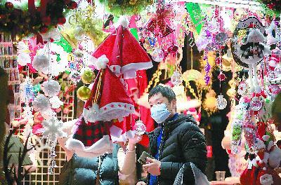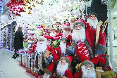 商户霍女士主营欧美和非洲市场,她的店铺里圣诞用品琳琅满目。她告诉记者说,因为疫情原因,她至今没有接待过一位国外客户现场采购,全年的销售额直接下滑了一半。