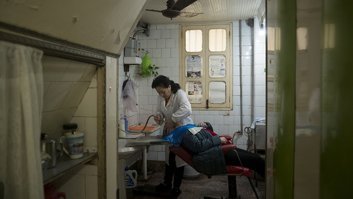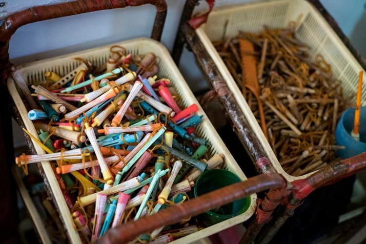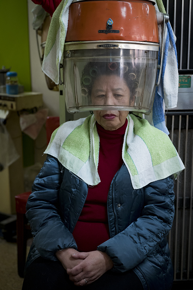 小篮子里堆满了彩色的发卷。这种给人烫发用的卷子现在已经找不到了,它们与和平美发厅一样,已经有70岁高龄。