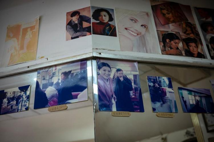 店内墙上贴着苏菲玛索的照片。“苏菲玛索曾经在我们这里拍过广告,电影《纽约纽约》也在这里取景。”说起美发厅的”光辉史”,王老板总是滔滔不绝。