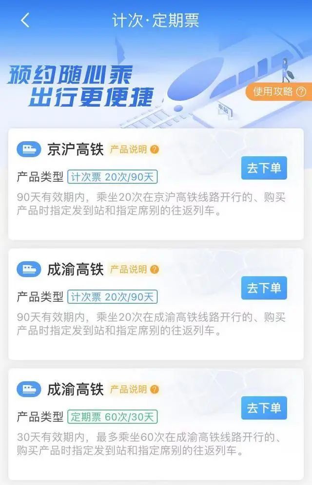 计次和定期票更适合商务差旅、通勤人士 ,有利于定期跨城出行的人群。