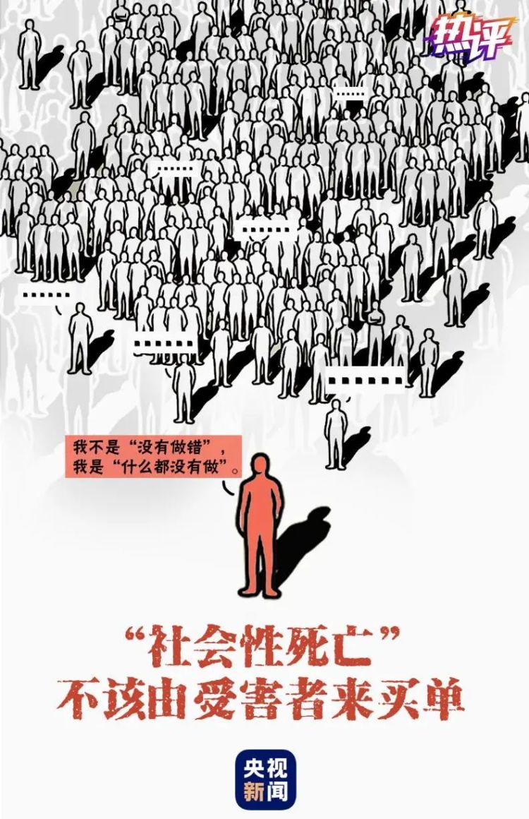 “造谣一张嘴,辟谣跑断腿。”被造谣伤害的后果不该由受害者去承担。解救“社会性死亡”,需要有力度的法律支撑,也需要一个有温度的社会伸出救援之手。