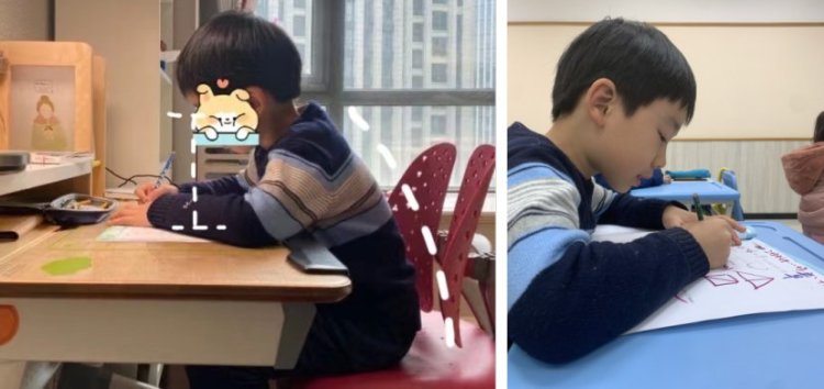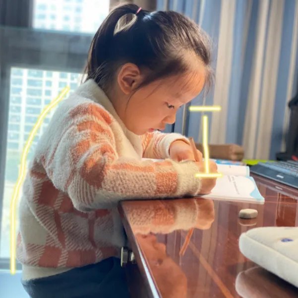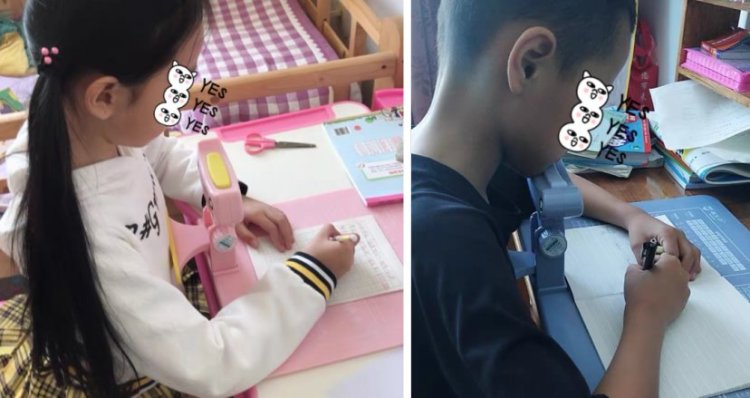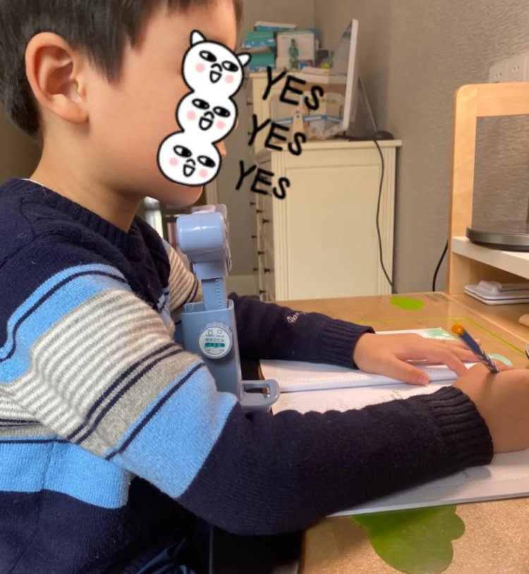 但朋友也反馈,当孩子做作业时,尤其身体和要写的地方比较远一些时,孩子身子就会不由自主往前倾。这个时候理论上帮助孩子养成离桌一拳距离的胸托,反倒成为了阻挡物,顶着胸让背部更往外拱。