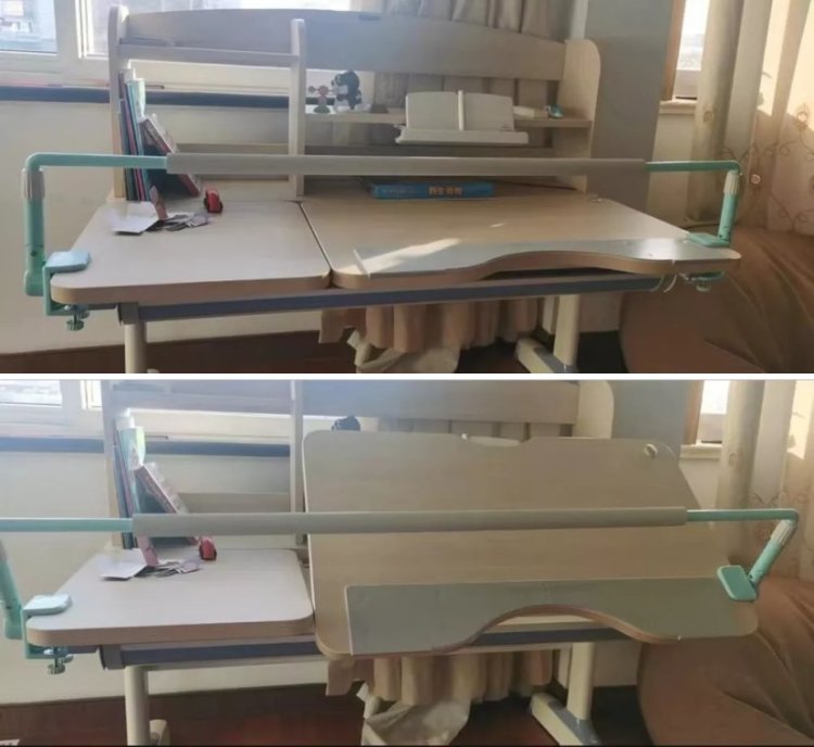 因为转轴可调节,所以学习桌的一部分抬起来也可以通过调节转轴来达到两边齐平。