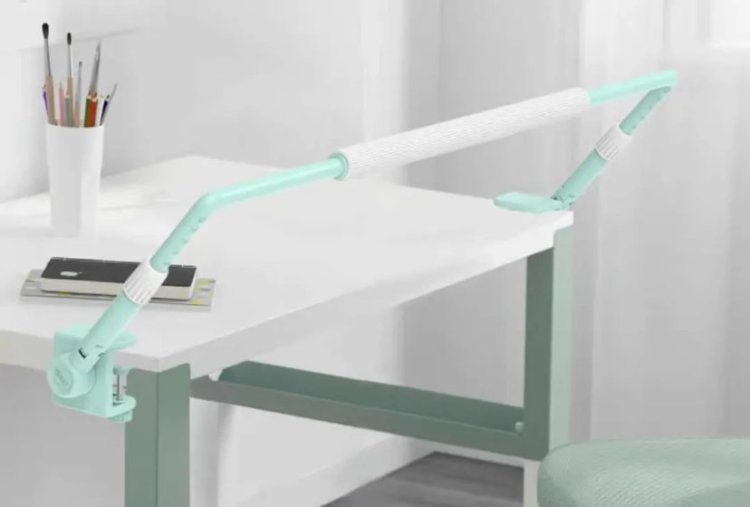 要想达到更好的效果,可以把杆子稍微调高一点,然后杆子像身子这边倾斜大约与平面倾斜70°左右,这样更容易保持好的坐姿,而且身体也自然和桌子保持一拳的距离。