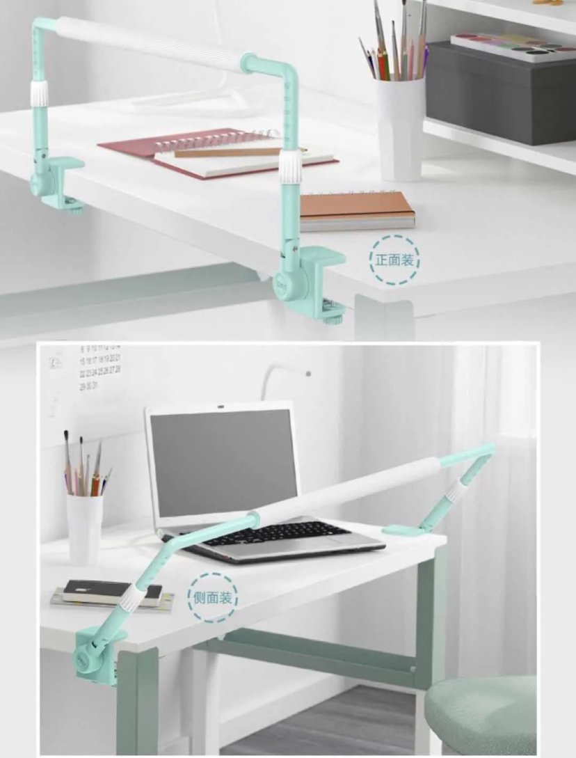 长杆型设置了两种转轴,以方便调节角度,不用的时候还可以平放到桌面上,不用占空间。