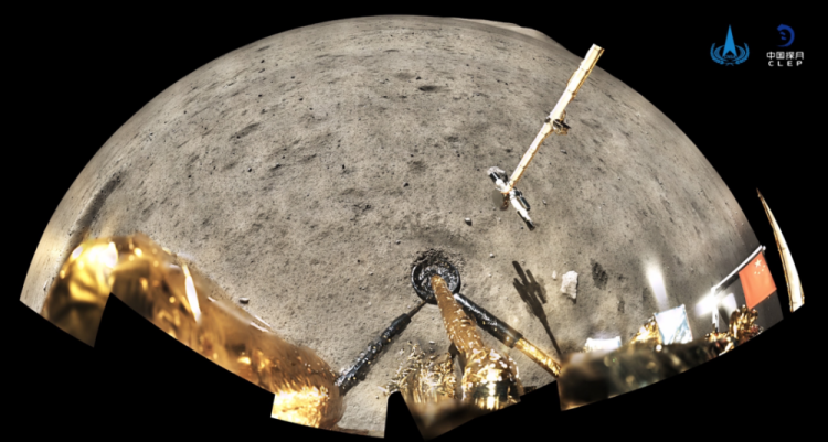 12月4日,国家航天局公布了探月工程嫦娥五号探测器在月球表面国旗展示的照片。新华社发