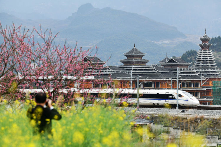 2020年3月4日,贵广高铁,贵州从江站附近。(新华社记者 杨文斌 摄)