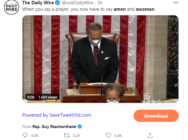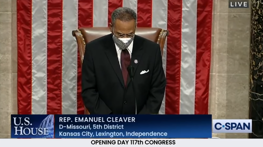 从美国社交网络上大量关于此事的网贴来看,此事发生在昨天美国第117届国会众议院开幕仪式上。当时,为开幕仪式致“祷告词”的美国民主党籍议员艾曼纽·克里夫(Emanuel Cleaver),在向“上帝”完成“祈祷”后,除了说出了“阿门(amen)”这个基督教徒在结束祈祷时常用的词语外,还令人意外地附带上了一个“awoman”的词语。