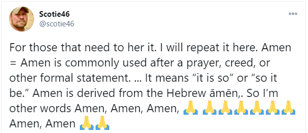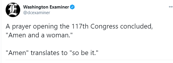 可尴尬的是,不少美国网民——尤其是那些信奉宗教的美国保守派势力及相关媒体,却纷纷指出“amen”一词其实来自于拉丁语以及希伯来语,而且这个词根本不涉及男女或性别,而是用来表达“如此吧/这样吧”(“So be it”)的意思的。