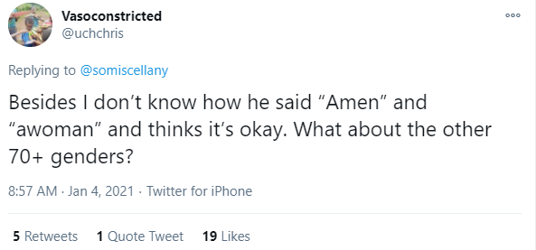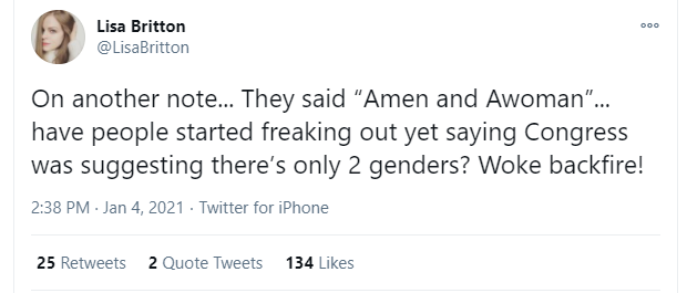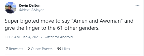 比如有人调侃说:克里夫太过分了,怎么能用amen和awomen呢?其他性别怎么办?佩洛西不是说要包容其他性别么?