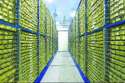 “现在我们所在的就是零下18摄氏度、湿度小于50%的国家种质库,种子在这里的保存寿命可延长到50年以上。”在位于中国农业科学院的国家作物种质库,《环球时报》记者站在4摄氏度的缓冲间,隔着玻璃窗看到了种质库里一排排密集的种子架,像图书馆里的书架一样排列有序。“这些架子可以前后移动,高处的种子目前还需要人工爬梯子取放,今年8月投入使用的新库将实现自动化流程,种子取放全部由电脑控制。”据国家种质库工作人员介绍,中国的种质资源保存数量超过52万份,仅次于美国(近60万份),位居世界第二。而将于今年启用的新库库容量为150万份,位居世界第一。