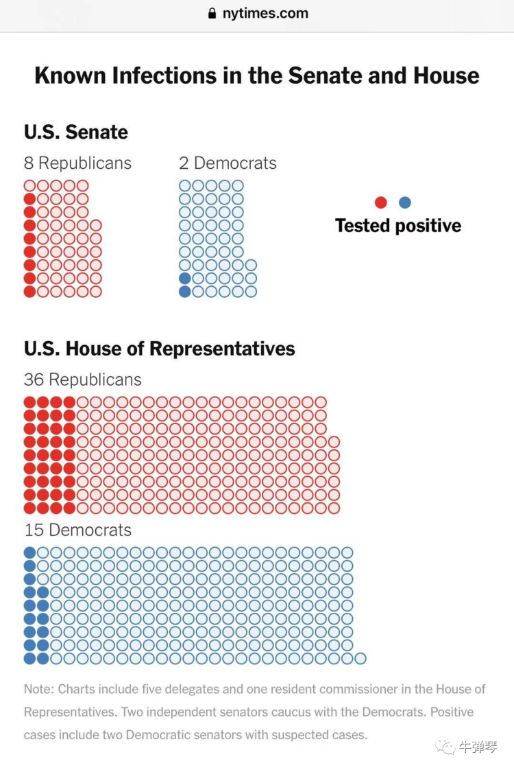 总计,目前美国国会,已有10名参议员、51名众议员中招。够惨烈吧!