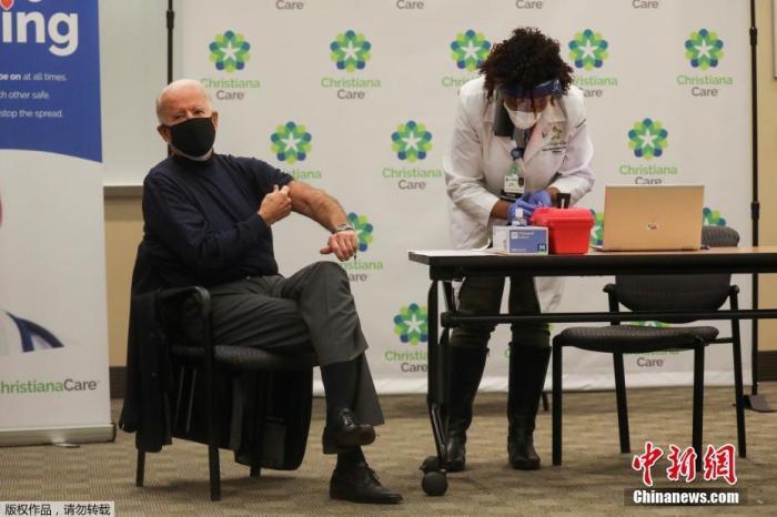当地时间2020年12月21日,美国当选总统拜登在特拉华州一家医院公开接种了新冠疫苗。