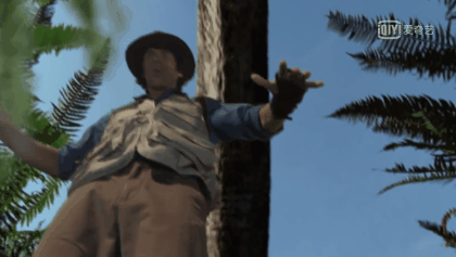 安迪小心翼翼跟着成年梁龙,在一排高树后面找到了巨蕨类: