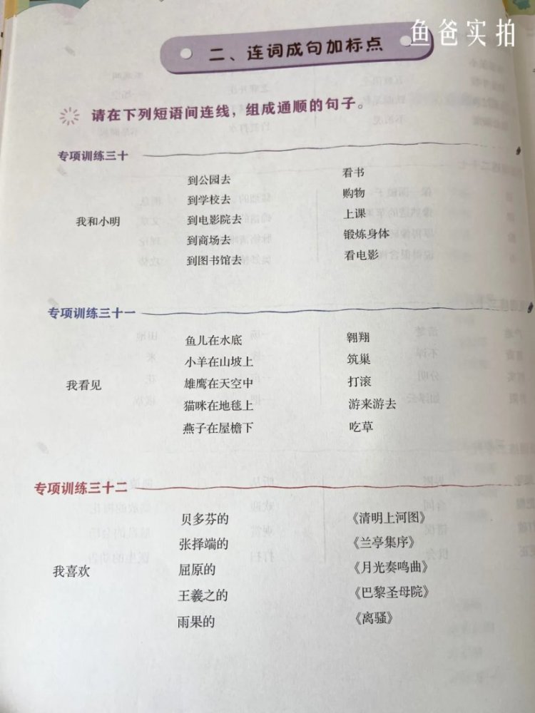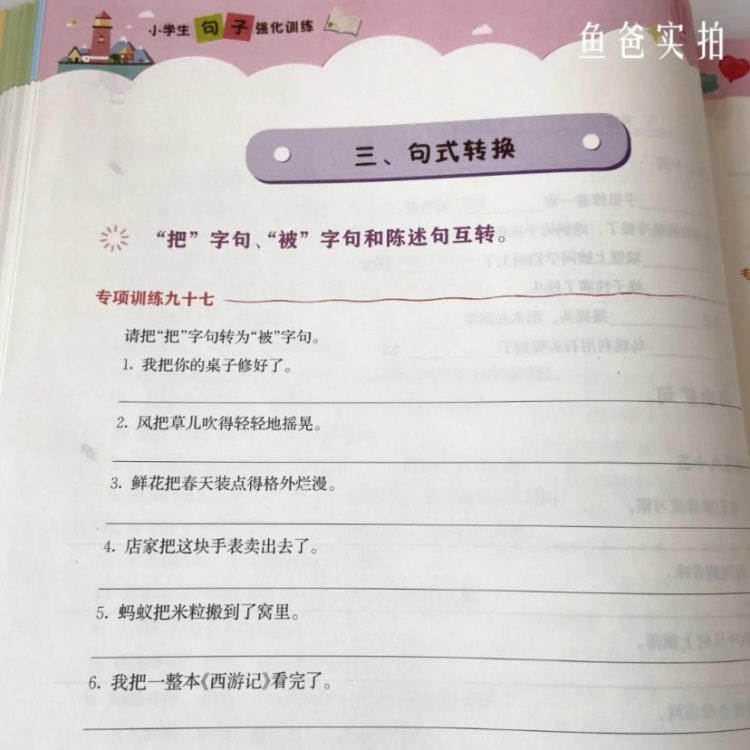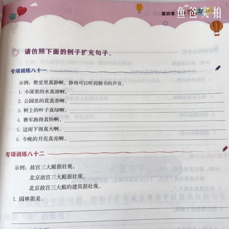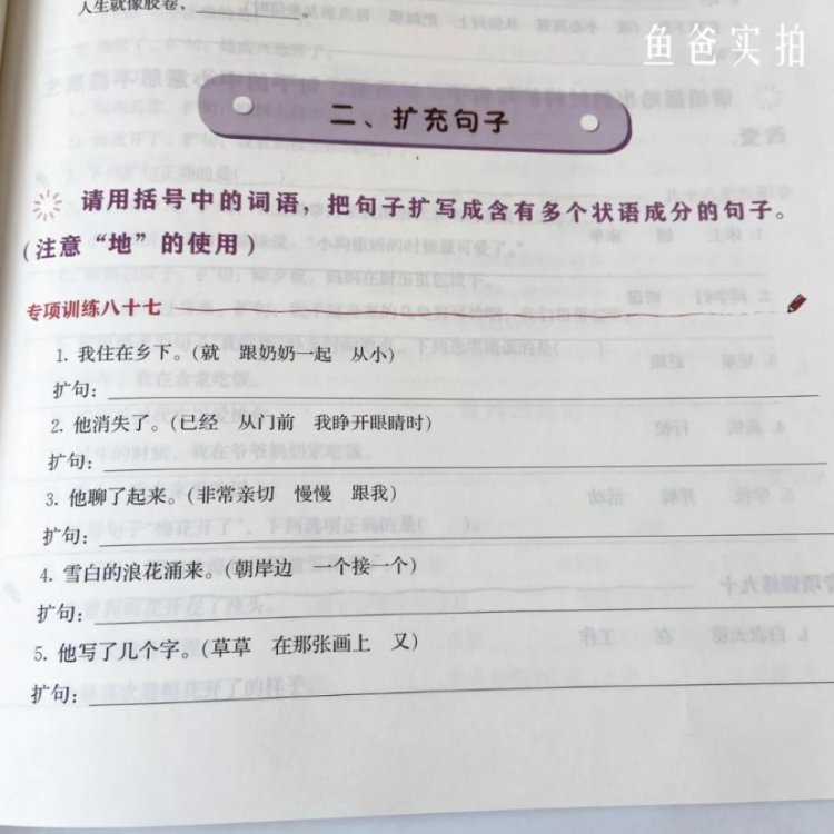 再到把字句被字句的运用以及仿写扩写句子这些,这也是目前小小鱼一二年级练得特别多的部分,完全紧跟教材,非常实用。