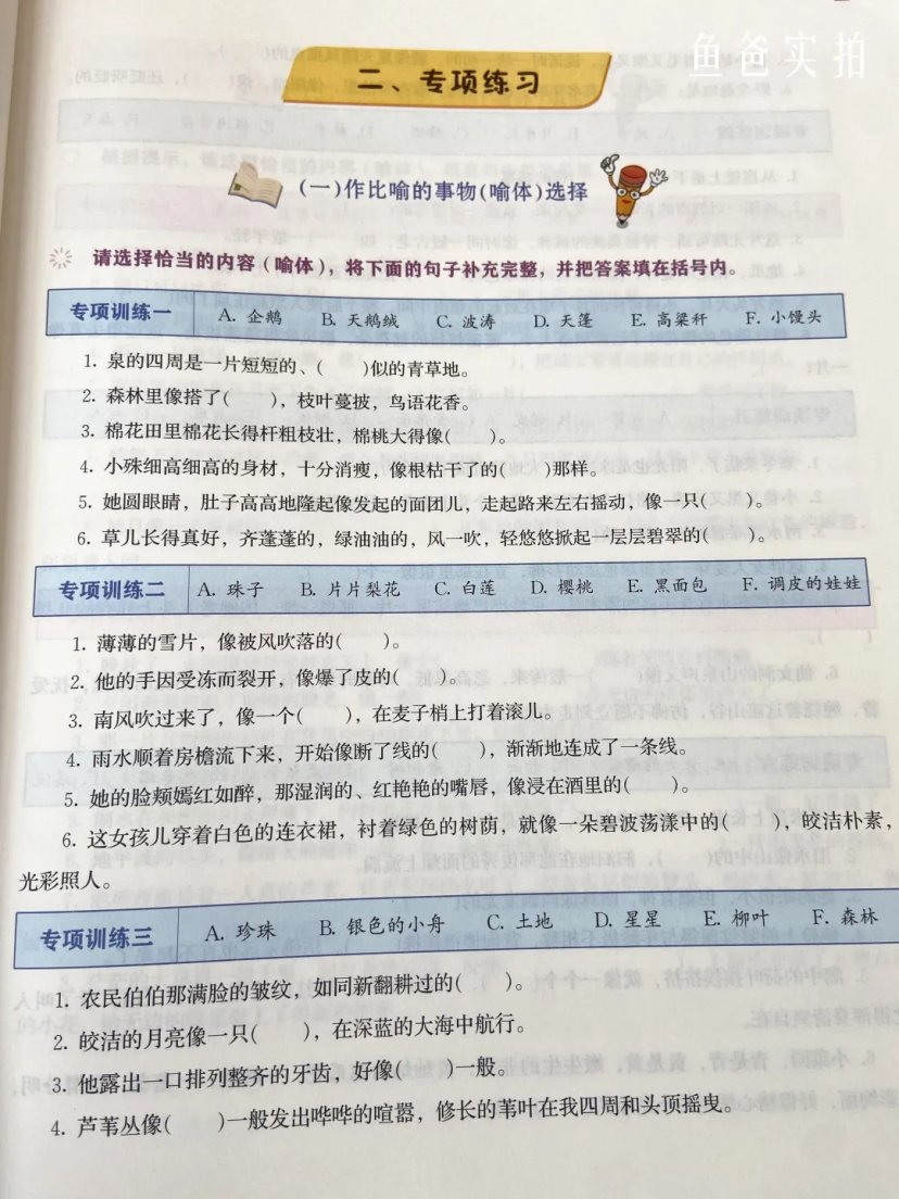这套书,为了孩子能够加强巩固所学,还有修辞手法之间的区别。