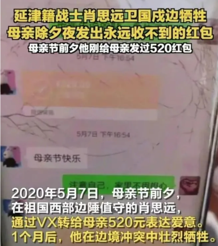 “看到烈士肖思远的头像,忍不住再哭一次。”肖思远烈士的微信头像被公布后,这句微博留言成了很多网友内心感受的真实写照。有人指出,对许多军迷来说,这只兔子就代表了中国的形象。20日,《那兔》系列的作者林超发布微博称,看着用行动保家卫国的烈士能从那兔里得到精神上的慰藉,“真的让我感动到不行”,林超还表示,会用自己的方式来纪念烈士们。