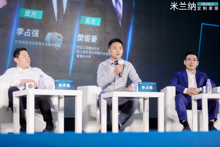 反方战队则有不同见解。反方代表张传喜会长、红星美凯龙定制事业部副总经理李占强、中金董事总经理樊俊豪认为,面对以小镇青年为代表的刚需型消费群体,很多家居企业并没关注到细分人群的消费特殊性。另一方面,代理商和代理商组织能力,以及体系化经营能力有没有跟上小镇青年需求步伐,同时纵观企业现存渠道布局单一、布局成本高的问题,企业如果没有独立运作体系,对于短时间内需求量大量爆发的能力要求,不仅没有形成增量,还会造成企业内耗。