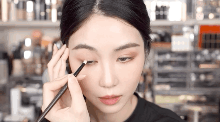 换一把小一点的刷子,蘸取哑光深色加深睫毛根部到眼尾,塑造出原本的眼部轮廓。