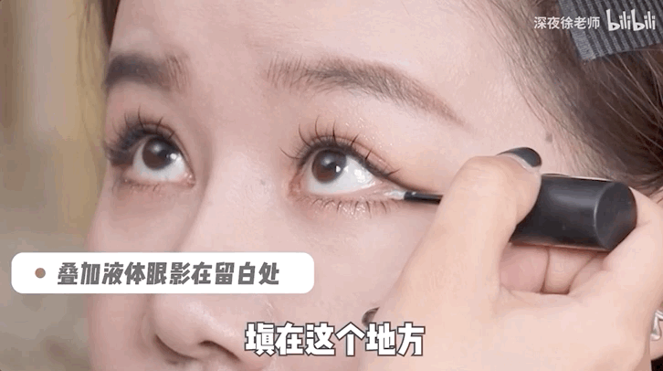 这时我们就可以学一学适当留白和利用内眼线、上眼线来填充眼形,让眼妆更好看。
