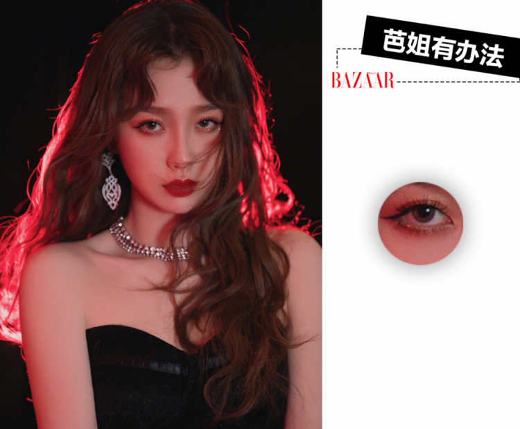 她在打造扩大眼尾外围的同时也会顾及到内眼线的部分,同样均衡了眼形比例,不会显得夸张。