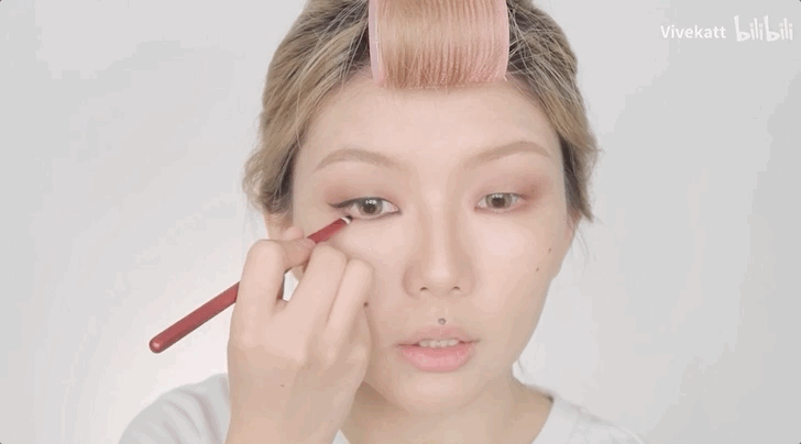 眼睑下至说白了其实就是下拉眼尾的化法,但它的重点却不在这个简单的下拉动作上。