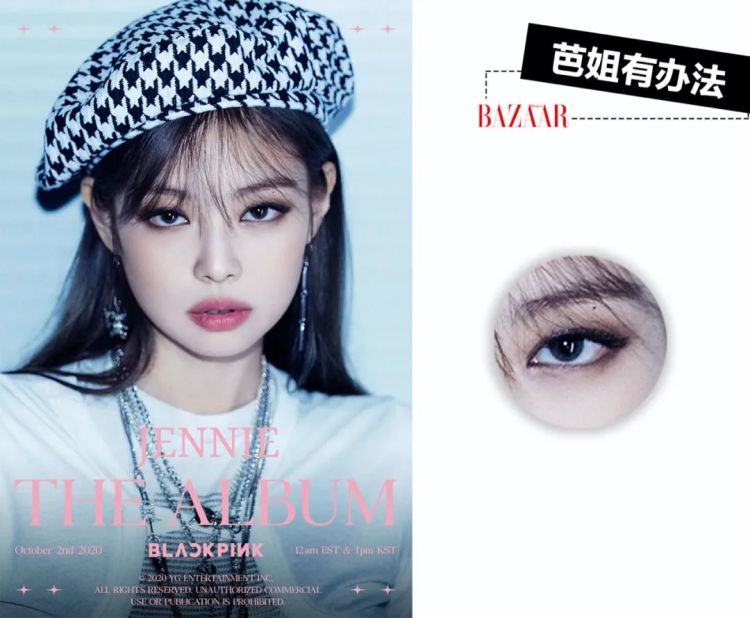 这类眼形在处理眼睑下至妆容时,更适合Jennie猫眼妆时期用到的包裹式化法。