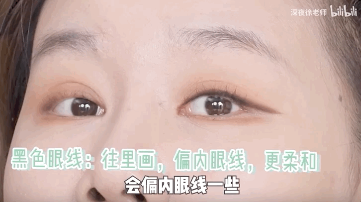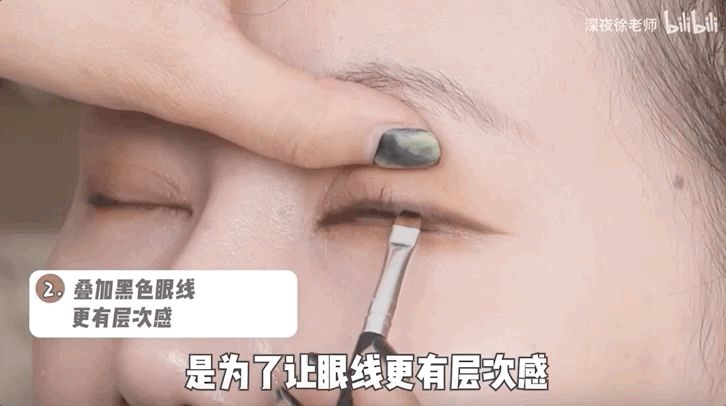 再蘸取黑色眼线画在内侧,让眼线更有层次感。
