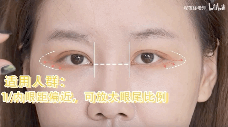 适用人群:眼间距近、偏圆眼形、眼尾上扬