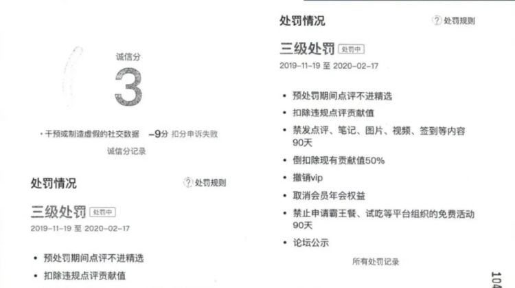 据本案一审相关信息显示,上诉人毕某是大众点评平台的“顶级会员”。曾经因为点赞数异常过高或单个点赞用时过短的情形,于2019年11月被大众点评平台采取三级处罚,处罚措施包括:禁发点评等内容90天、扣除现有贡献值50%、撤销VIP、论坛公示等。