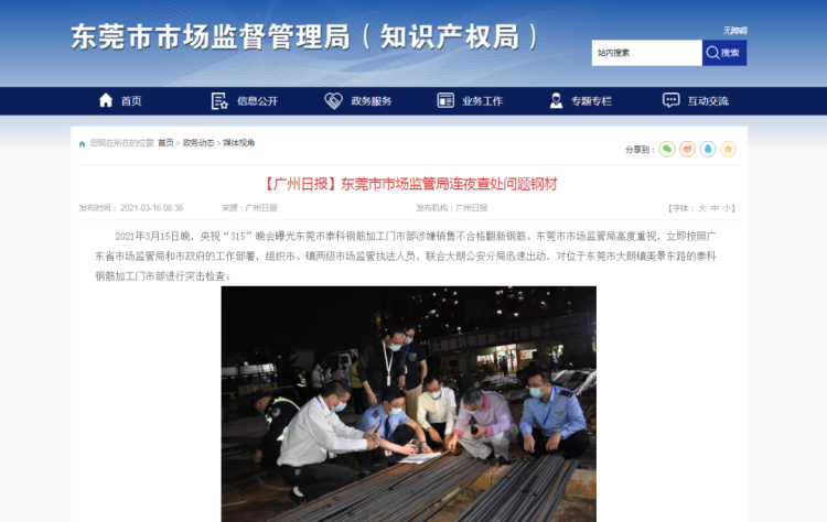 东莞市市场监管局连夜查处问题钢材