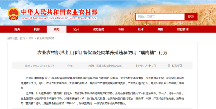 农业农村部已连夜派出工作组!督促查处肉羊养殖违禁使用“瘦肉精”行为