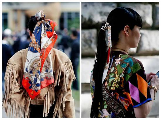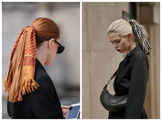 丝巾出现在头上,它的作用可不仅仅是绑头发。