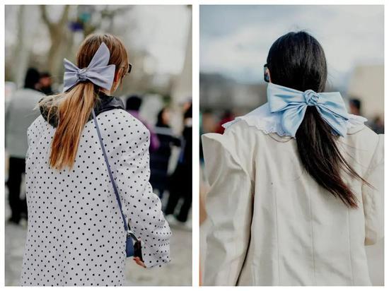 蝴蝶结发饰自带减龄特效,比较适合在日常穿搭中选择。