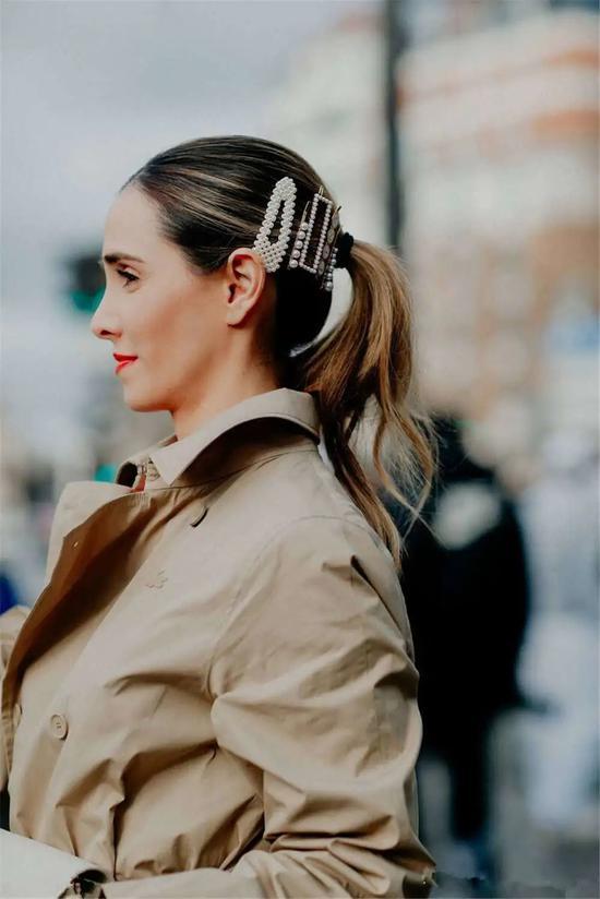 这种多个发卡同时出现的使用方式,即可以出现在一丝不苟的高马尾辫上也可以出现在中分齐肩发上。