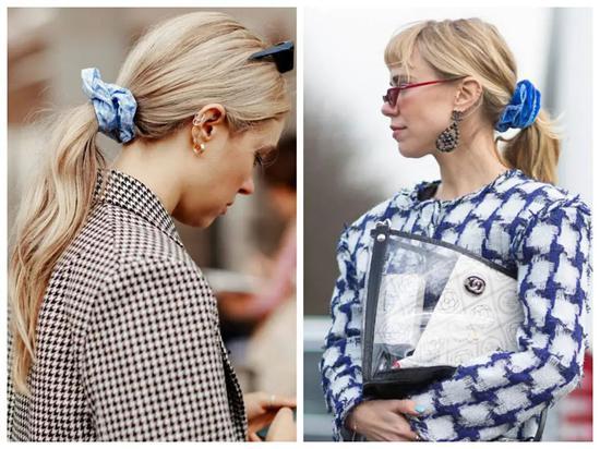 如果你是浅色发色,建议用淡雅色调真丝缎面款的发圈,既符合发色要求还特别容易搭配衣服。