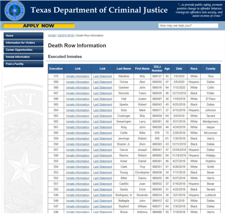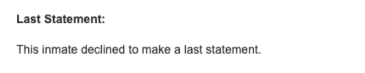 美国德克萨斯州刑事司法部就有这么个网站,记录了570名死囚在执行死刑前最后一句遗言。