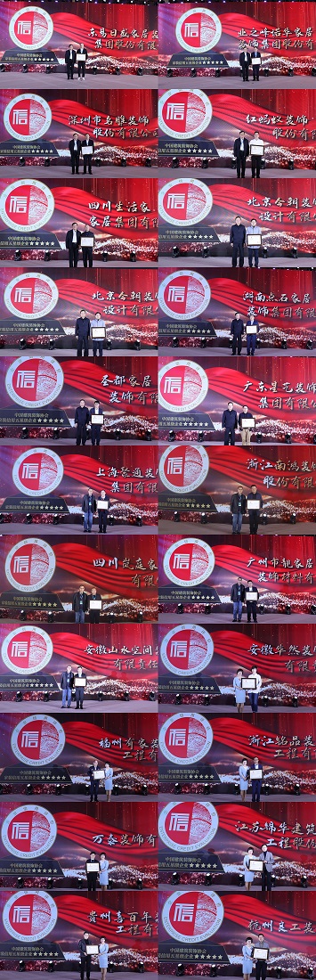 为在全行业实施高标准市场体系建设行动,坚持平等公正、开放有序、诚信规范,响应国家号召,健全社会信用体系,中装协住宅产业分会建立了中国家装企业信用评价体系,经一年筛选、资质审查、国家指定第三方机构评定,遴选出共22家首批五星信用企业,在本次家装产业年会上予以发布。