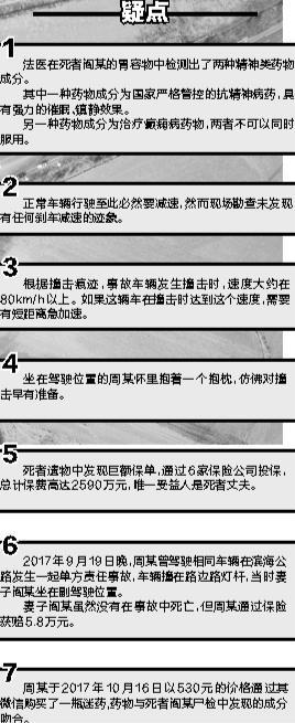 事故发生前,周某把车停在路边,骗妻子服下了假迷药,随后妻子进入昏迷状态。确认妻子“睡熟”后,周某的心中开始倒计时,随即一场精心策划的撞车事故发生了。