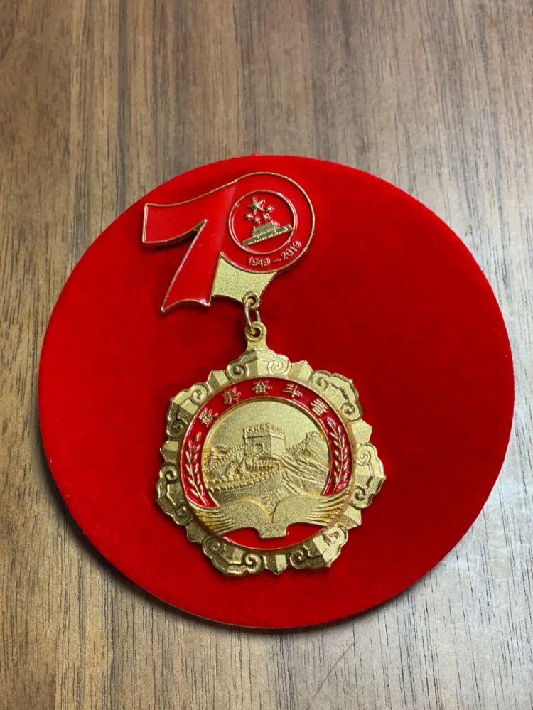 ·2019年,王伟入选新中国成立70周年“最美奋斗者”名单。这是奖章。(本刊记者 侯欣颖 / 摄)