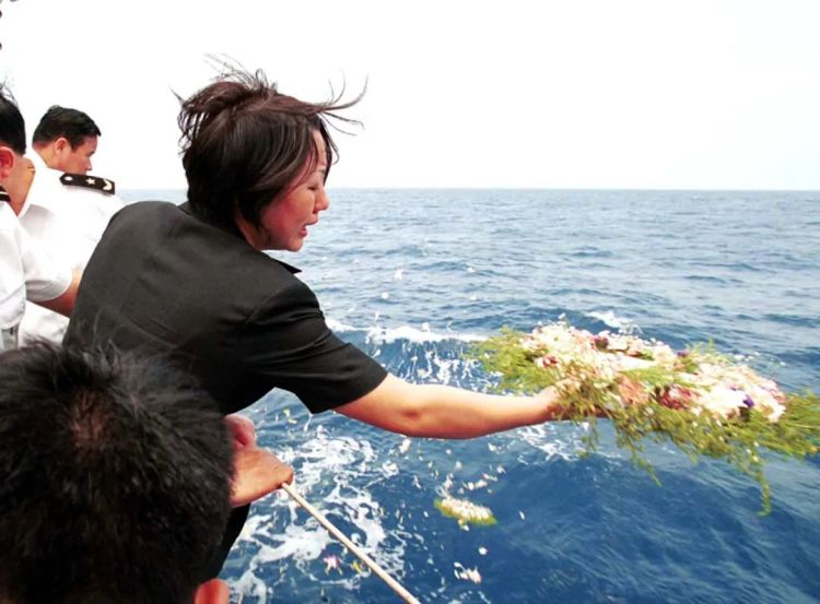 ·2001年4月26日,在王伟的海祭仪式上,阮国琴痛不欲生。