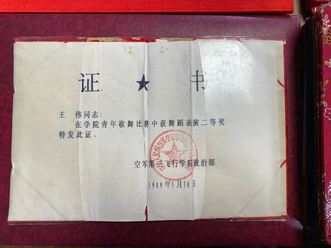 ·王伟在航校期间,在舞蹈大赛中凭借霹雳舞获得二等奖。