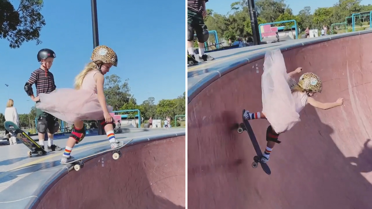 3月29日是澳大利亚小女孩佩吉·托宾(Paige Tobin)的6岁生日,这天她身着粉红蓬蓬裙从12英尺(约3.5米)高的U形坡上一冲而下,娴熟地在场地内玩滑板。这段视频被发布在网上后她迅速走红。