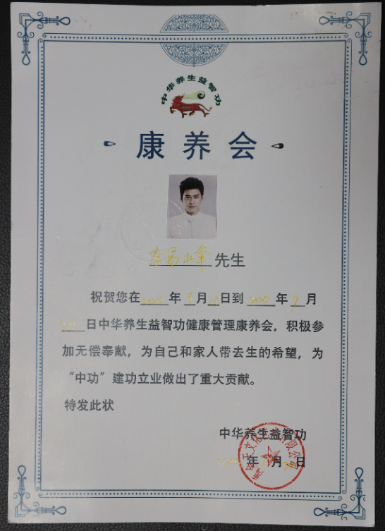 “过去学‘中功’的也都给毕业证,孙旭慧说老弟子原来的证都作废了,不算数了,现在‘中功’合法了,要办新的证。”在孙旭慧的宣传下,何旭贤不但自己补办了“中功传承证”,还拉了不少人和她一起补办。