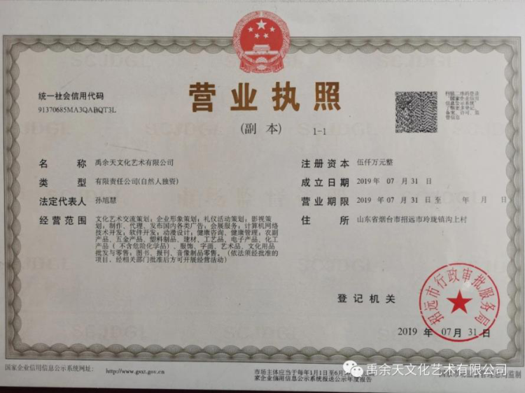 “然后,我填上需要办证的人员信息,盖上‘禹余天文化艺术有限公司’的公章就可以了。”