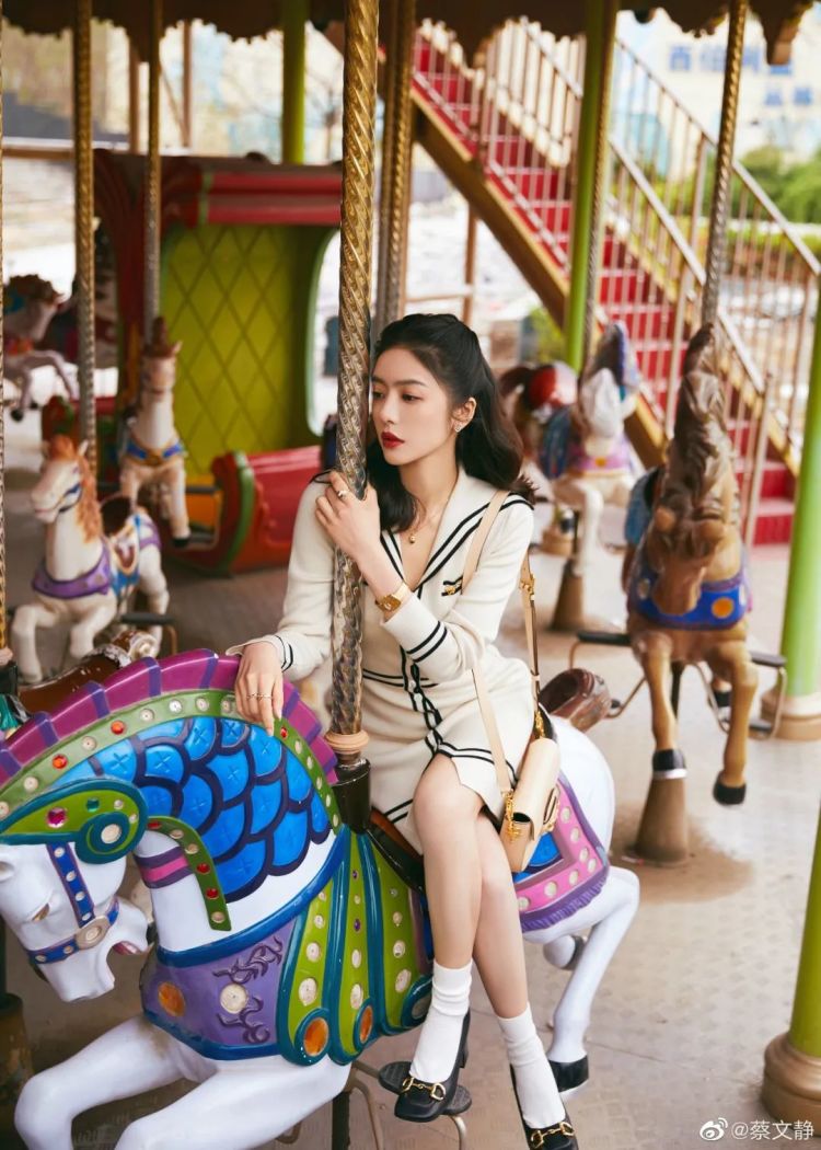 Gucci今年的方头鞋也是大火的单品,蔡文静之前就穿着它拍了一组游园大片,白色针织连衣裙和长卷发造型温柔妩媚, 氛围感hin强。